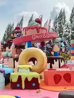 A dessert-themed cafe located in Pattaya, featuring a fantasy-style decoration that is perfect for dessert lovers and photography enthusiasts. This cafe is perfect for all ages, especially families with children.