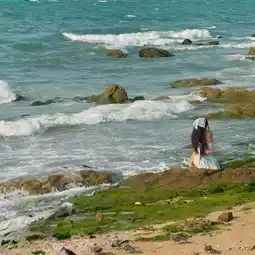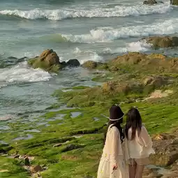 A beach full of green sea moss that only happens once a year! Come during the winter when the moss grows all over the rocks, making it a very romantic place. It's so Korean-style.