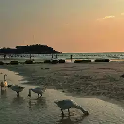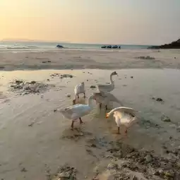 Spot the friendly geese at Tien Beach! 🦢🐾