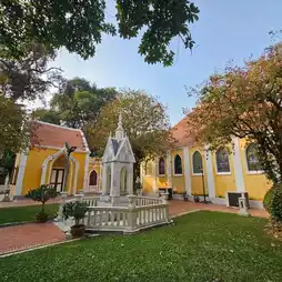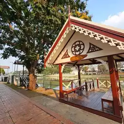 Wat Niwet Thammaprawat Ratchaworawihan, Phra Nakhon Si Ayutthaya This temple is located on an island in the middle of the Chao Phraya River on Koh Loi, Ban Len Subdistrict, Bang Pa-in District, Phra Nakhon Si Ayutthaya Province. It is an old temple that you have to take a cable car across the river. The temple that King Rama V ordered to be built is a first-class royal temple, a type of Ratchaworawihan, under the Thammayut Nikaya sect of monks. It was used as a place for performing royal merit when His Majesty moved to reside at Bang Pa-In Palace. The highlight is the use of Gothic architecture, imitating Christian churches.