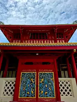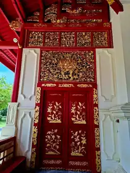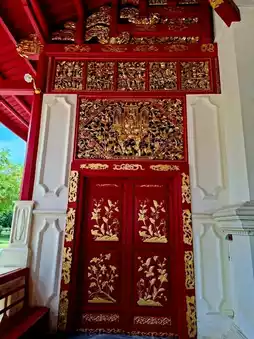 Wehats Chamrun Throne Hall is a two-story wooden building with Chinese architecture. The lower audience hall houses a "marble amphitheater."