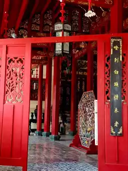 The entire throne hall is decorated in Chinese style by skilled craftsmen from China. The story of the Three Kingdoms is woven into the glazed roof tiles and carved wood. The furnishings were also imported from China.