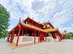 The palace contains several royal residences, but the most striking is probably the Wehat Chamrun Pavilion, a bright red Chinese pavilion-style pavilion, beautifully reflected in the water.