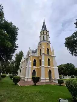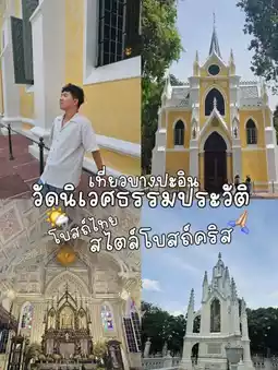 “A Thai temple with a European feel in the middle of the Chao Phraya River. 🏰✨ Take the cable car to experience the tranquility of Gothic architecture. #WatNiwetThammaprawat #AyutthayaHiddenGem #TripWithMe #ThaiTempleEuropeanStyle #TripcomThailand”