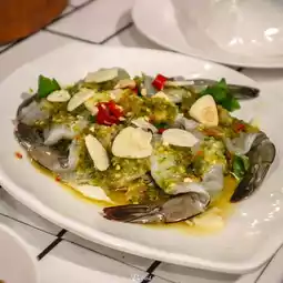 A famous BBQ restaurant in Charan area, catering to foodies! 🥓 There are 3 great value BBQ sets to choose from: Small set 300, Medium set 400, and Large set 500 baht. Delicious and complete with soft marinated pork, fresh seafood, and a special dipping sauce that you must try.