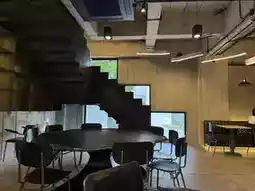 - Spacious cafe with an indoor zone on the ground floor featuring dim lighting, perfect for chilling