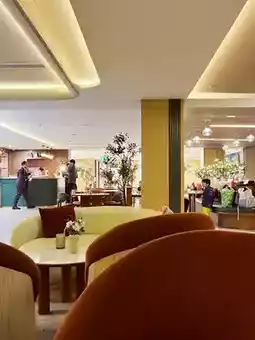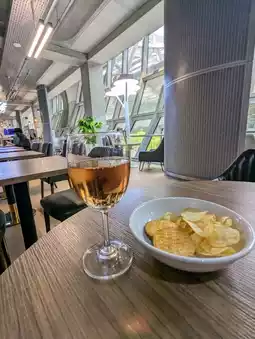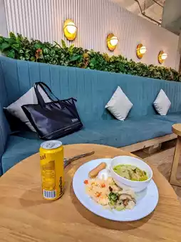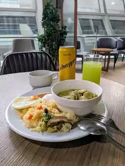 This time, I went to the less crowded G Lounge. Although it's free, they actually provide drinks and food, and the food is made to order. Of course, I had to try the Hainanese chicken rice, followed by a bowl of curry and a cup of coffee. I was so full. The lounge environment is quite nice. Although it's not big, it's small and beautiful, with a view by the window. The design is quite novel, making it a great place to take a short rest.
