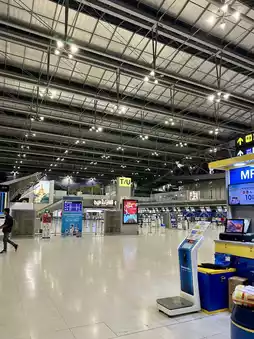 #GetDiscountsWithoutLuck Suvarnabhumi Airport is the main airport in Bangkok. It stands out with its large passenger terminal designed to be airy with a curved roof and clear glass. It is modern and can accommodate a large number of passengers.