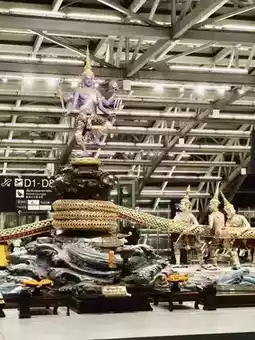 ① World-class mythological art right by your boarding gate: This sculpture depicts a classic scene from Hindu mythology, exuding grandeur and making every pass feel like witnessing a myth come to life.