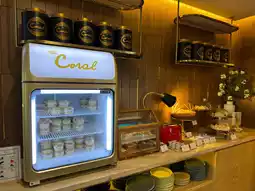 The food lived up to the expected "Coral standard" – good quality and satisfying. While the exact spread wasn't detailed, it clearly met expectations for a pre-flight lounge. The standout beverage note was the excellent coffee – freshly ground and genuinely tasty, a welcome step above typical lounge brews.