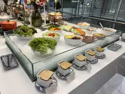 The food spread is extensive: Thai curries, hot soups like Hokkien mee and laksa, salads, breads, sushi rolls, and Western dishes. A full-service bar with quality cocktails, wines, and beers is a definite highlight — cocktails are crafted well. Beverage stations include premium coffee, teas, ice cream, and soft drinks.