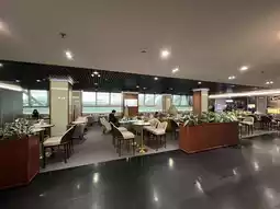 Smooth entry is followed by a modern, warm-toned design with ample seating, including quiet corners and semi-private areas — very inviting and relaxing. Spacious without feeling crowded; excellent if you’re after a peaceful layover haven.