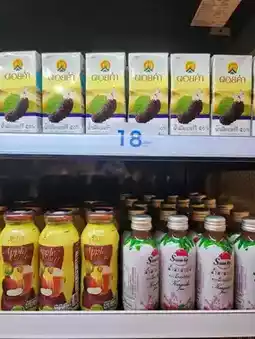 Water is 10 baht, fruit juice is 18 baht, and dried fruit is 30 baht 😆 (prices vary by type)
