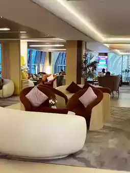 Step into a spacious, elegantly designed space featuring comfortable seating, warm lighting, and a calm ambiance. Help yourself to a selection of hot and cold dishes, fresh snacks, and premium beverages—from barista-style coffee and teas to refreshing juices and alcoholic drinks. The lounge also offers high-speed Wi-Fi, charging stations, and flight information displays, ensuring you stay connected and informed.