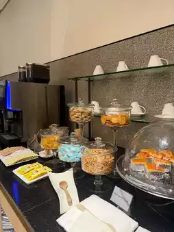 • High-speed Wi-Fi and charging ports available throughout the lounge. ⚡