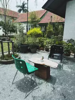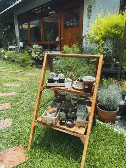 A homey-style cafe decorated in a lovely green garden. It has an atmosphere like chilling at a friend's house. It is very friendly. This home cafe offers both drinks and food at a lovely price. For shoppers, there are plants and ceramic cups that are collectibles to choose from.