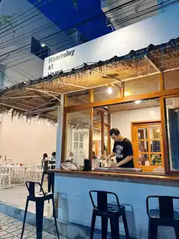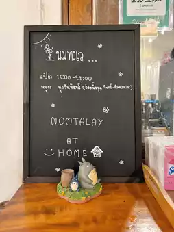 We found a restaurant called Nom Talay. It has a very beachy feel, with a white theme and a touch of safflower on the roof. It's always packed with customers, with the place filling up. They told us it's been open for quite some time.