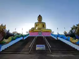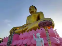 🎈Wat Muang Chum, an ancient temple in Singburi Province, was originally called Wat Kradannga, built since the Ayutthaya period, more than 400 years old. It was an abandoned temple since the fall of Ayutthaya for the second time in 1881. The villagers built a new temple near the original temple and named it Wat Muang Chum. Inside Wat Muang Chum is the largest Buddha Sihing in Thailand, Phra Buddha Sihing Ming Mongkol, a Buddha statue in the Mara-Vijaya posture, enshrined on a pink lotus pedestal. It was built to be the center of the Buddha Park. If you come to visit Singburi Province, come pay homage and ask for blessings from the largest Buddha Sihing in Thailand at Wat Muang Chum.