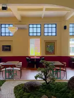 A newly opened vintage-style cafe and restaurant in the Charoen Krung area, renovated from an old building. The shop features a vintage décor and a waterfall, creating a classic atmosphere. The shop has two floors of seating: the first floor is a cafe area, while the second floor is a restaurant area. There's also a live DJ.