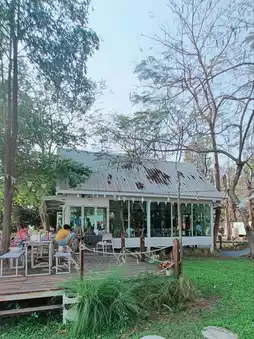 👉 A restaurant and cafe by the Chao Phraya River. The spacious area is divided into a seating area of the restaurant and a very large playground area. Suitable for families with children. There are also art activities for children to do. The shop offers food and drinks. There are both indoor and outdoor seats with a view of the Chao Phraya River.