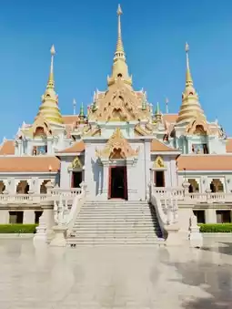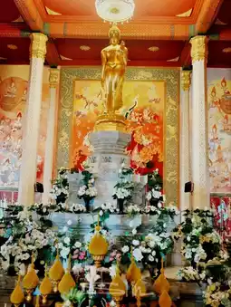 This chedi boasts stunning architecture, comprising five spires, with the principal spire housing the Buddha's relics.