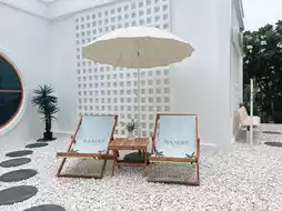 🏠 Minimal style cafe decorated in clean white tones contrasting with wood patterns. The shop has a wide area. The surrounding area is decorated with trees, making it shady. Let me tell you that the atmosphere is very good. There are both air-conditioned and outdoor seats. There are many corners where you can take pictures. The view is good. Every corner is beautiful.