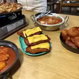 Before New Year's Eve, we went for a walk at Baratthana Thong. It was a very crowded time, all the restaurants were full and we had to wait in long lines. My friends and I decided to press the "Nung Nom Nua" button (488 people 🥴) and walked around to wait. In addition to the main road, there were many other restaurants around, so we found a very delicious Korean restaurant with good service. They will cook for us at the table. What we ordered was kimchi seaweed fried rice with grilled pork, tteokbokki, cheese fried chicken, spicy fried chicken, and kimchi soup. Everything was delicious and freshly made, one dish at a time, which took 15-20 minutes. The food at this restaurant is not expensive. We ordered about 1,300 baht. After we finished eating, we went to Baratthana Thong and sat in the corner where the staff made bread. It smelled very good. We ordered 5 desserts, bread, and hot milk. The total cost was about 300 baht.