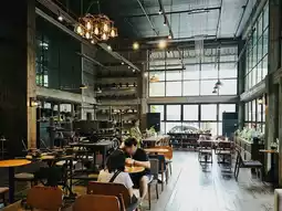 Eastern Glass Cafe in Bangkok is a hidden gem located near the Lak Song MRT station. This charming cafe is set within a vintage glass factory, offering a unique blend of industrial chic and cozy comfort. The interior features large windows that flood the space with natural light, highlighting the beautiful glass sculptures and plants that adorn the cafe.
