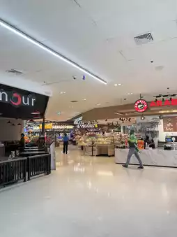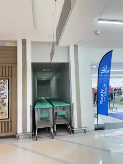 Hypermarket, Nawamin area, Bangkok, has 2 floors. The first floor sells various products, dessert shops, vegetables, fruits, fresh food, various household items. The second floor is a food center.