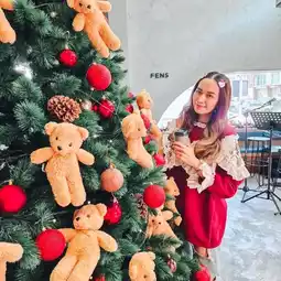 Another cafe that has a very cute Christmas theme, with a big bear Christmas tree in the middle of the shop. Plus, there are many festive corners for taking cool photos, both inside and outside.