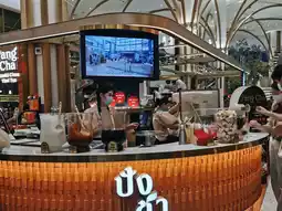 A famous Thai tea shop that has been in the Michelin Guide for 6 years with its distinctive Thai tea from blending 5 types of tea together, which is the shop's unique tea recipe, along with chewy toppings, which is an upgrade to a more modern Thai tea menu. This branch is located in a newly built area of the mall called Tree Chamber, a new restaurant zone. Pangcha's shop is right in the middle, made into an open-air shop with seating inside the shop, decorated in a brick block style to look modern Thai.