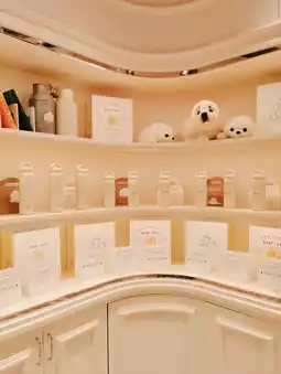 The shop's atmosphere is mainly white, decorated with baking equipment to add a homemade feel. The shop uses seals as its brand mascot, so souvenirs such as water bottles and seal dolls are also sold.