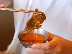 The meat is fragrant and soft. It is even better when eaten with the restaurant's special dipping sauce.