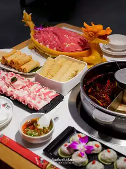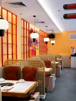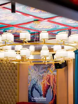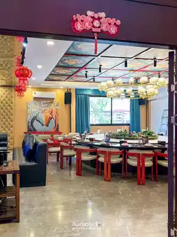 #Chinese restaurant CQK Mala restaurant, Huai Khwang branch, looks like it was recently renovated. It stands out with its warm atmosphere and full decoration. The restaurant is spacious with many tables to choose from. It is divided into several rooms and zones. Each room is decorated according to a different theme, giving a variety of feelings. Every corner is beautiful to take pictures of. The staff provides fast service, whether you come alone, as a couple, as a family, or as a large group. The restaurant has space to meet your needs.