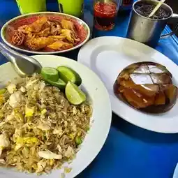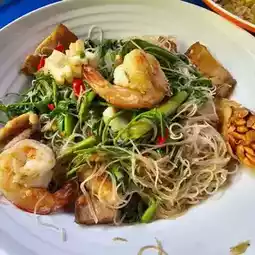 -Chicken with crispy noodles, well-balanced flavor, add some soy sauce, perfect, fragrant with the smell of the pan, 60 THB