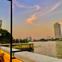 A new riverside restaurant along the Chao Phraya River! Great atmosphere with stunning sunset views 🍹✨