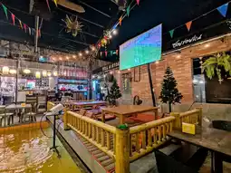 Soikoinae is a very local restaurant, somewhat similar to Taiwan's mountain chicken towns. It has a large area, with casual parking at the entrance, mostly outdoor seating, and a projector screen in the middle playing football matches, creating a pretty chill atmosphere.
