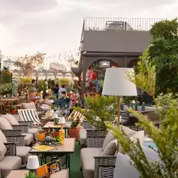 ✨A rooftop bar that is so awesome! Decorated in the style of teenagers from the 80s, the shop is decorated very well. Every corner is a great place to take pictures!! Great vibes, great atmosphere, ready to serve fun with a menu of 80s-themed drinks and delicious comfort food. There are seats to choose from both inside and outside. Have fun with DJs and bands playing cool music. Enjoy the atmosphere with an outdoor movie screen that shows every night! 🎵🎙️