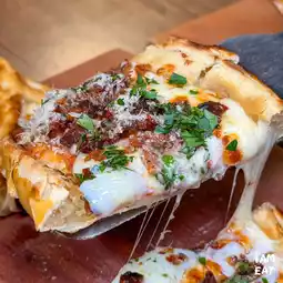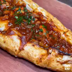 🍕 I found these incredibly delicious mini pizzas with melted cheese and a rich, fragrant filling. They're folded pizzas with toppings on top. From Fat Lamb, I ordered the MINI PIDE TURKISH PIZZA BOAT for 300 baht per person. It's a fantastic value!