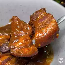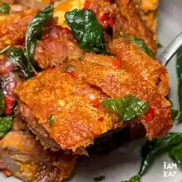 Pork belly fried in fish sauce 328.- The pork belly is very delicious.