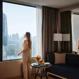 We stayed in the Premier King room, a large room decorated in a simple and luxurious style with large glass windows to see the city view. Fully equipped with facilities 🌟