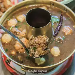 ◼️ Tom Zaab with mixed pork, ending with a hot Tom Zaab served in a hot pot with various types of pork including pork ribs, soft pork, bouncy pork, stewed pork, and meatballs, served in a very satisfying way