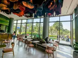 To match the fashionable positioning of One Bangkok, this Starbucks Reserve in Tower 4 also adopts a modern and stylish design. The ceiling is designed to resemble a wave of colorful flowers, swaying gracefully, making it both fashionable and beautiful.