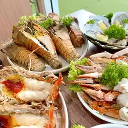 🎊🦀🦐Another premium buffet restaurant that will make you go wow! Fresh seafood, delicious food, enjoy the unlimited buffet with the restaurant's menu, such as grilled shrimp with juicy shrimp roe, grilled river shrimp, lobster, ready-to-eat crab, sea crab meat, crab eggs, oysters, salmon, sea bass, cockles, sweet clams and many other menus. The price includes drinks and desserts. ✨The restaurant uses fresh ingredients, mostly from fishermen every day. The restaurant is spacious, clean and has a good atmosphere. There are both air-conditioned rooms and outdoor areas.