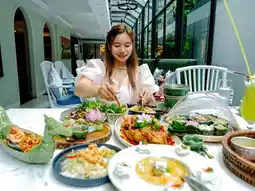 The decoration of the restaurant emphasizes nature, flowers, waterfalls, with a modern and Thai style that blends perfectly