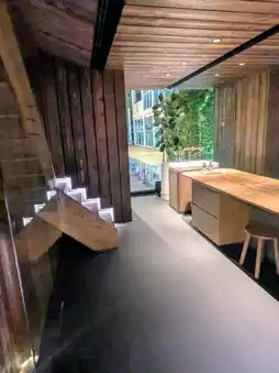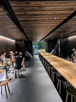 Ari, a trendy area in Bangkok, is home to many unique cafes and Japanese restaurants. Among them is 'qraft,' a Japanese-style cafe that specializes in matcha drinks and baked sweets. The cafe features a sleek, dark-toned, and wooden elongated space, exuding a sense of understated luxury and fashion. The second floor is equipped with a long mirror, making the space feel significantly larger.