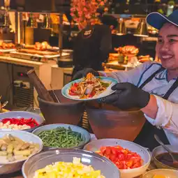 Somtam Bar, Spicy Salad, Pickled Shrimp, Desserts, Chocolate Fondue, Fresh Fruit