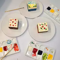 ๐๐ ๐๐ข๐ ๐ง๐๐ญ๐ฎ๐ซ๐ ๐๐๐ง๐ฏ๐๐ฌ ๐๐๐ค๐, a cake with many flavors that allows us to create our own artwork on the cake, like a canvas. There will be cake flavors to choose from, along with a tray of cream to paint with a brush as you like. Let me tell you, I really like this job. We get to use our own skills. And also get to concentrate while coloring. Super healing! ๐จ๐ฐ