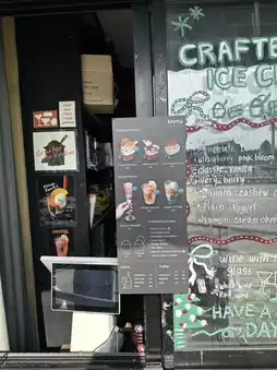 The shop opens at around 1 pm. I recommend coming early because the best time to take photos is from around 4 pm onwards. There are a lot of people queuing up to enter the shop. The menu here is homemade ice cream priced at around 120 baht and soft drinks. The shop requires you to order one menu per person before you can enter the shop.