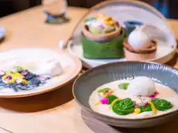 🥂 Dinner with fusion Thai food, created by "Chef Ian" at Khum Hom #MooBurinConfirm Food and desserts, carefully select ingredients, meticulously cooked and plated, every dish is delicious